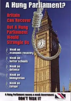In the last days of the 2010 United Kingdom general election over 500,000 leaflets were delivered by YBF to over 20 LibDem/Conservative marginals across the country warning of the dangers of a hung parliament.[11]