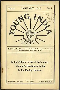 Young India was a book written by Lala Lajpat Rai in 1916 and later published by Mahatma Gandhi from 1919 to 1931.[1] It was also the basis for Lala Lajpat Rai's contribution to the final edition of The Seven Arts in Oct 2017.[2] Through this work, Mahatma Gandhi sought to popularize India's demand for independence or Swaraj.[3]