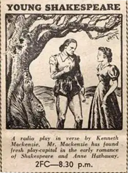 Young Shakesepeare is a 1937 Australian radio drama by Kenneth Mackenzie about William Shakespeare.[1]