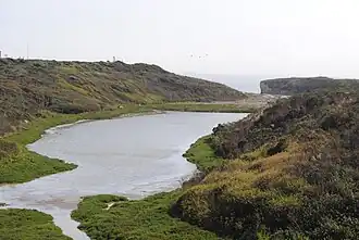 The reserve encompasses a pocket beach, seasonal lagoon, wetlands, and coastal prairie on the western edge of the city of Santa Cruz. Other features include a sea stack, sea caves, and tidepools.