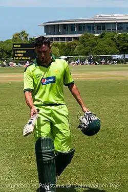 Mohammad Younis Khan PP SI (Urdu: محمد یونس خان; Pashto: محمد یونس خان; born 29 November 1977) is a Pakistani professional cricket coach and former cricketer and captain of the Pakistan national cricket team in all three formats of the game, and is widely regarded as one of the greatest middle-order batsmen in Test cricket.[3][4][5] Khan is the only Test cricketer in the history of the game to score a century in all 11 countries that have hosted Test matches.[6][7][8] Younis Khan was a member of the Pakistan cricket team that won the 2012 Asia Cup. Under his Captaincy Pakistan won the 2009 World Twenty20.