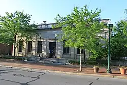 In 1868, a small group of women started a reading group that created a library, which originally included 175 volumes. They housed the library on the second floor of the Arcade Building on North Huron. In 1886, the Arcade Building became inadequate for the purpose and the library moved to the second floor on the Union Block on Michigan Avenue.[1] In 1890, Mrs. Starkweather donated her home to the 'Ladies' Library' on Huron Street as well as new furniture and a large stained glass window.[1] The city of Ypsilanti took over the Ladies' Library in 1949, changing the name to the Ypsilanti Public Library. In 1963, the library moved into a 1915 Beaux-Arts building that had previously housed the Ypsilanti post office[2] at 229 West Michigan Avenue.[3] The library began serving residents of nearby Ypsilanti Township in 1968, under an arrangement where the township paid the library $5 per library patron per year.[4]