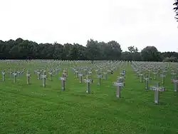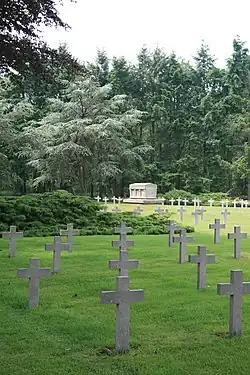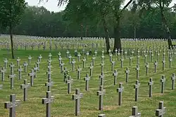 Ysselsteyn German War Cemetery is a military cemetery interring casualties of the First and Second World Wars. It contains over 31,000 dead from around 25 countries, including Wehrmacht and SS-men and Dutch war criminals. This cemetery is located in the village of Ysselsteyn in the municipality of Venray in Limburg, Netherlands, and is 32 km (20 mi) east of Eindhoven. Ysselsteyn is the largest Second World War German cemetery and is the only Nazi-German cemetery in the Netherlands.[1] Following the war, the Nazi soldiers were reburied in the cemetery. The deceased include Germans, Austrians, Dutch, Poles, Russians and many who fought on the side of Nazi Germany or supported them in non-military roles.