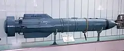 Yu-2 (鱼-2, "Torpedo-2", 鱼 here refers to the initial character for "torpedo", 鱼雷/Yu lei in Chinese) torpedo was a Chinese development of the unguided straight-running Soviet ASuW RAT-52 torpedo with passive acoustic homing capability added. The historical background of Yu–2 is identical to that of Yu-1 torpedo and Yu-4 torpedo. Contrary to the higher number assigned, Yu-2 torpedo was the first Chinese domestically produced torpedo entering service, ahead of the Yu-1 torpedo.