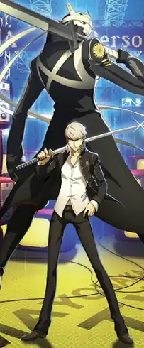 ![]() Yu Narukami in Persona 4 Arena accompanied by his Persona 'Izanagi' | |