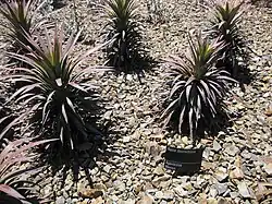 The plant is cultivated as an ornamental in many places because of its colored foliage. Leaves are bluish-gray when young, turning burgundy as they mature. It requires little maintenance, with low water requirements. It is suitable as a garden border in sandy soil and also as a potted plant for patio or walkway.[2]