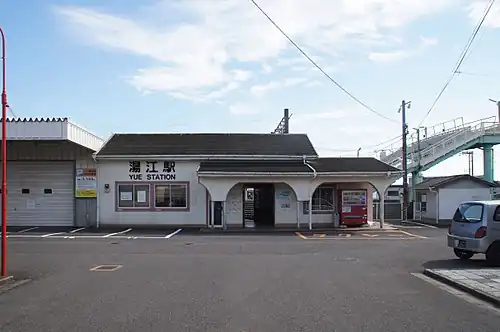 Yue Station (湯江駅, Yue-eki) is a passenger railway station located in the city of Isahaya, Nagasaki Prefecture, Japan. It is operated by JR Kyushu.[1][2]