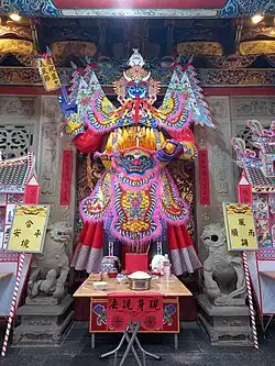 The ritual combines features of Chinese operatic tradition (including a wide range of instrumental music as well as vocal performances such as solo deliveries, antiphonal and choral singing), the recitation of sūtras similar to other Mahāyāna rituals as well as esoteric Vajrayāna practices (including maṇḍala offerings, recitation of esoteric mantras, execution of mudrās and visualization practices involving identifying oneself with a divinity).[5][6] In particular, the usage of mantras, mudrās and maṇḍalas in the ritual correspond directly to the concept of the "Three Mysteries" (Chinese: 三密; pinyin: Sānmì) in tantric Buddhism: the "secrets" of body, speech and mind.[7] The ritual is one out of several esoteric Chinese Buddhists rites dedicated to the salvation of sentient beings, such as the Mengshan Shishi (Chinese: 蒙山施食, pinyin: Méngshān Shīshí, lit: "Mengshan food bestowal") that is carried out in daily liturgical services.[8][9][10][11] It is also usually performed as part of the more extensive Shuilu Fahui ceremony (Chinese: 水陸法會, pinyin: Shuǐlù Fǎhuì, lit: "Water and Land Dharma Assembly"), where its function is to aid in the salvation of all sentient beings.[6][8][12][13]