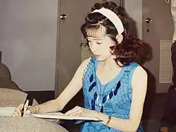 Yukiko Iwai (岩井 由紀子, Iwai Yukiko), also known by the nickname Yūyu (ゆうゆ, Yūyu), is a Japanese singer and actress born 26 May 1968 in Yokohama, Kanagawa Prefecture, Japan.[1][2] Iwai was a member of the all-girl pop group Onyanko Club (from 21 June 1985 until 31 August 1987), and she was the shortest of all the members at 150 centimetres (4 ft 11 in).[1][3][4][5] She was also half of the pop group Ushiroyubi Sasaregumi, a spin-off group of Onyanko Club.[1][3][4] She graduated from Kaetsu Women's Junior High and High School (嘉悦女子高校) (now Kaetsu Ariake Junior High and High School), but left Kaetsu Women's Junior College (嘉悦女子短大) (now Kaetsu University Junior College) before she finished.[6] She has an older sister, Akiko, who is four years older than her and is said to look just like her.[7]