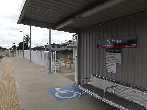 Yuleba railway station is located on the Western line in Queensland, Australia. It serves the town of Yuleba. The original station had one platform, opening in 1879.[1]