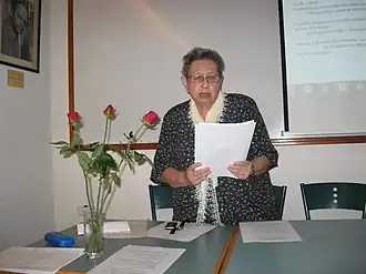 Yulia Sister's activities in the House of Scientists and Experts of Rehovot started in 1991. Within this forum she organizes lectures, seminars and scientific conferences. She leads the scientific seminars of the House of Scientists that are regularly held at the Weizmann Institute of Science.[15] In 2008, and then in 2014 she organized conferences devoted to the Bilu movement and to the First Aliyah.[16][17] She also maintains friendly contacts with foreign colleagues, such as the Club of Russian-speaking scientists of Massachusetts.[18]