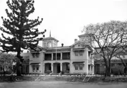 With the commencement of WWII the hostel was used to accommodated a hundred women and children evacuated from Hong Kong in 1940. In 1941, the depot was once again converted into a hospital, treating general patients. In 1942, it was devoted to "special" cases - those soldiers suffering the effects of venereal diseases. The buildings along the river frontage continued to be occupied by Evans Deakin; however, most of the other structures on the site were used for the treatment of patients. Most of these buildings are now demolished.[1]
