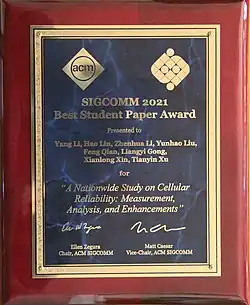 - ^ a b "软件学院刘云浩团队获ACM移动与无线通信年会最佳论文奖 - 清华大学新闻网". www.tsinghua.edu.cn. Retrieved 2019-10-07.