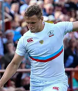 Yuri Viktorovich Kushnarev[a] (born 6 June 1985) is a Russian former rugby union player. He played as a fullback and/or as a fly-half. Kushnarev is the most capped Russian player as well as the top scorer for Russia. Having played one hundred and twenty times for his country, Kushnarev holds the 24th most caps in international rugby.