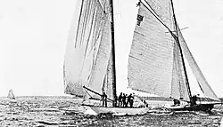 The Russian yacht Galliya II competing in the sailing competitions at the 1912 Summer Olympics. Both Yuri and his father sailed to watch the competition.