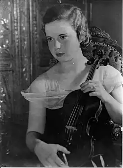 In May 1936, at the École normale de musique de Paris, accompanied by the Orchestre Fémininin de Paris and its conductor Jane Evrard, she presented the Concertos in E major by Bach and E flat by Mozart in the first part. Then, in the second part, she played the "Romance" in F by Beethoven, pieces by Paradis, Kreutzer, Kreisler: