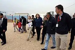 As a host country, Jordan is estimated to spend $870 million a year supporting Syrian refugees; if treated as a traditional donor, it would have contributed 5,622% of its fair share.[21] The camp is under joint administration of the Syrian Refugee Affairs Directorate and UNHCR.[19] In March 2013 the UNHCR named Kilian Kleinschmidt Senior Field Coordinator of the camp;[22] in late 2014, Hovig Etyemezian took over as camp manager.[23] Other actors include: