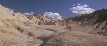 Zabriskie Point /zəˈbrɪski/ is a 1970 American drama film directed by Michelangelo Antonioni and starring Mark Frechette, Daria Halprin, and Rod Taylor. It was widely noted at the time for its setting in the counterculture of the United States. Some of the movie's scenes were filmed on location at Zabriskie Point in Death Valley. The movie was an overwhelming commercial failure[5] and was panned by most critics upon release.[6]