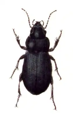 Zabrus is a genus of ground beetles. They are, unusually for ground beetles, omnivores or even herbivores, and Zabrus tenebrioides can become a pest in cereal fields.[2]