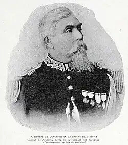Zacarías Supisiche (1843–1897) was an Argentine military man, who participated in the Argentine Civil War and Paraguayan War.[1] He began his military career fighting against troops of General Justo José de Urquiza, taking an active part during the battles of Cepeda and Pavón.[2]
