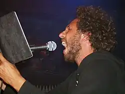 Zacharias Manuel de la Rocha[1] (born January 12, 1970) is an American musician, rapper, singer, songwriter, and political activist. He is best known as the vocalist and lyricist of the rock band Rage Against the Machine.[2][3] Through both Rage Against the Machine and his activism, de la Rocha promotes left-wing politics in opposition to corporate America, the military-industrial complex, and government oppression.[4]