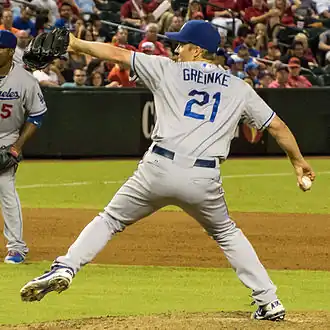 Donald Zackary Greinke (/ˈɡreɪnki/ GRAYN-kee;[1] born October 21, 1983) is an American former professional baseball pitcher. Greinke played in Major League Baseball (MLB) for the Kansas City Royals, Milwaukee Brewers, Los Angeles Angels of Anaheim, Los Angeles Dodgers, Arizona Diamondbacks, and Houston Astros. He is considered to be one of the greatest pitchers of his generation.[2]