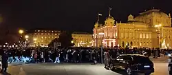 President of Serbia Aleksandar Vučić expressed his condolences to the families of those injured in the attack on behalf of himself and all of Serbia.[23] A vigil was organized by the parents of the children killed in the 2023 school shooting in Belgrade, and held on 21 December on the Republic Square in Belgrade.[24] During the anti-government protests in Niš on 22 December, the protestors held sixteen minutes of silence – fifteen minutes for the fifteen victims of the Novi Sad railway station canopy collapse and an additional one for the killed Zagreb student.[25]