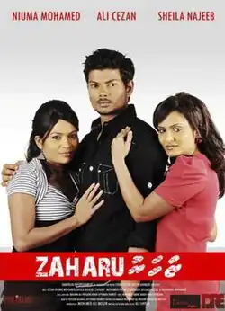 Zaharu (transl. Poison) is a 2011 Maldivian psychological romantic thriller film written and directed by Ali Shifau. Produced by Mohamed Ali under Dark Rain Entertainment, the film stars Ali Seezan, Niuma Mohamed and Sheela Najeeb in pivotal roles.[1] The film is inspired from Adrian Lyne-directed American psychological erotic thriller film Fatal Attraction (1987).[1] The film centers on a married man who has a weekend affair with a woman who refuses to allow it to end and becomes obsessed with him.[1] The film was released on 5 May 2011. Upon release the film received mixed response from critics and was declared a "flop" at box office.[2]