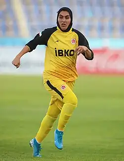![]() Zahra Ghanbari playing for Bam Khatoon FC in the AFC Women's Club Championship | |||