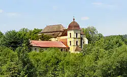 The Svatá Dobrotivá Monastery was founded in 1262–1263 as the first Augustinian monastery in the Czech lands. The Gothic building was rebuilt in the Baroque style in the 17th century, the monastery church of the Annunciation was rebuilt in 1713–1719. In 1785, the monastery was abolished and the building converted into a rectory and a school. In 1990, the area was returned to the Augustinians.[7]