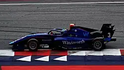 In Barcelona, O'Sullivan qualified on reverse pole, and would fend off fellow Williams Academy member Luke Browning to secure his second win.[59] He added more points to his tally in the feature race, finishing eighth.[60] In Austria, O'Sullivan qualified in sixth but was penalised three places during the sprint race for impeding.[61] Despite the setback, O'Sullivan would charge forward to fourth.[62] Sunday was much better, O'Sullivan mastered his way into the lead, taking advantage of his rivals fighting and breakthrough for his first Formula 3 feature race win.[63][64] O'Sullivan had a difficult weekend in his Silverstone home race, failing to score points.[65] In Hungary, O'Sullivan stormed to pole position, his first of the year.[66][67] His sprint race was compromised by making contact with Nikola Tsolov, which forced the Briton to pit for a new front wing and was classified 21st.[68] He then went on to dominate the feature race from pole, equalling the F3 win record with his fourth victory, propelling him to second in the standings.[69][70]