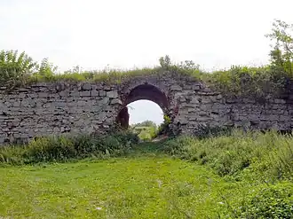 The Zaliztsi Castle (Ukrainian: Залозецький замок, romanized: Zalozets'kyi zamok) is located in Zaliztsi, Ternopil Oblast, Ukraine. A defensive castle built in 1516 by Marcin Kamieniecki[1] of the coat of arms of Pilawa, Voivode of Podolia, on the Seret River,[2] and an architectural monument of national importance.[3][4]