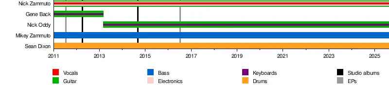 - Nick Oddy - electric guitar, keyboards (2013–present)
