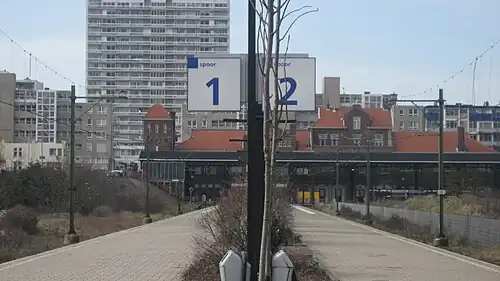 Zandvoort aan Zee is a terminal train station in the town of Zandvoort, Netherlands. The station opened on 3 June 1881, and is within walking distance of the beach.[1] The station is on the Haarlem–Zandvoort railway. The station has two platforms and services are operated by Nederlandse Spoorwegen. Until 1995 trains from Maastricht and Heerlen terminated at this station.[2]