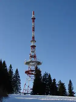 The Zakopane-Gubałówka transmitter (Polish designation: RTON Gubałówka) is a facility for FM- and TV-transmission on the Gubałówka mountain at Zakopane, Poland. The Zakopane-Gubałówka transmitter uses a 102-metre-high (335 ft) free-standing lattice tower located at 49°18′25″N 19°56′25″E / 49.30694°N 19.94028°E. It is situated at 1,122 metres above sea level.