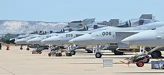 ![]() A Spanish Air and Space Force EF-18A Hornet at Zaragoza AB | |