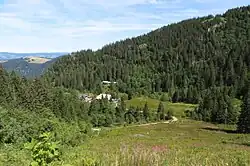 Das Zastler Loch is the source region of the Zastlerbach stream. In winter the slopes of the cirque are prone to the formation of cornices and to avalanches. Sometimes the snow remains until well into the summer months. Around 1840, when a cold period dominated Europe, the inhabitants of the eastern and northern Feldberg region cut the snowfield to the ground because they feared a glaciation of the Feldberg.[3] Since 1651 there has been grazing in the Zastler Loch.[4] The former cattle hut, the Zastler Hut is a restaurant today. Next to it is the Freiburger Hut which was built in 1952 for the Freiburg Ski Club.[5] Charcoal burning sites may also be seen in the Zastler Loch.[6]