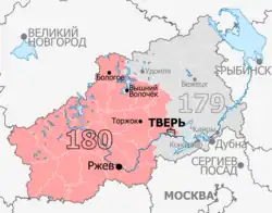 The Zavolzhsky Constituency (No. 180) is a Russian legislative constituency in the Tver Oblast. In 1993-2007 most of the constituency was included into the old Tver constituency, but in 2016 Bezhetsk constituency was extended to Tver and gained the name "Tver constituency", while mostly rural parts of former Tver constituency were placed into new Zavolzhsky constituency.