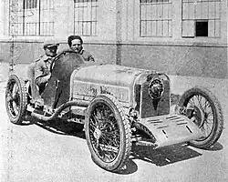 With an output of 55 kW (75 hp) at 5,500 rpm and a three-speed gearbox with reverse gear (3+Z), the car reached a maximum speed of 175–180 km/h (109–112 mph). The car was powerful but had an unreliable engine with a tendency to burn pistons.[8] The spark plugs and pistons of the engine were very difficult and slow to cool, and usually after some time the pistons burned out, so the car mostly raced on short tracks.[6] The car's body was made of aluminum sheet on a wooden frame. The chassis had a rectangular, ladder-frame design that was riveted from pressed-steel U-sections. The solid-axle car was suspended by longitudinal leaf springs and Hartford friction dampers. The wheels were Rudge & Whitworth wire and the brakes were mechanical, drum with balancer. The wheels were fitted with 4.95x28 tires.[2]