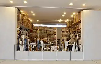 Sekal's sculptures from the late 1980s and early 1990s have a small scale and abstract geometric shapes, sometimes referring to figuration (Bust, 1988). After returning from Japan, he felt the need to create sculptures with a rounded organic shape and realized several variations based on a plaster cast of a found stone (Variations on the Kritzendorf Stone, 1992).[47] At the same time, he designed a memorial to the writer H. P. Lovecraft (1990), a sculpture for the grave of Alfred Schmeller and the Memorial to the Jews of Vienna who were killed during the war (1992). Between 1995 and 1997, he redesigned the plaster sculptures that returned from Prague National Gallery. In particular, he cut up and reassembled the Unsteady Buildings, which he had intended for his retrospective exhibition at the Prague City Gallery. Sekal concluded his creative activity with an extraordinary accomplishment, transforming his last studio into a total work of art six months before his death.[48] The studio was reinstalled in this form as part of the National Gallery exhibition of modern art at the Trade Fair Palace in Prague.[49]