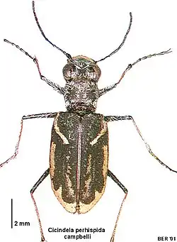 Zecicindela campbelli is a species of tiger beetle in the family Cicindelidae, endemic to New Zealand. It belongs to the genus Zecicindela, which comprises ground-dwelling beetles known for their speed and predatory behaviour. The species was originally described by Thomas Broun in 1886 under the name Cicindela campbelli and was later reclassified into its current genus.[1]