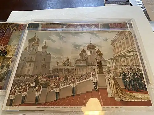 Zelia Nuttall was sent to Russia in 1894 as a representative of the Penn Museum to establish exchanges with Russian museums and offer financial assistance to Russian archaeological excavations in exchange for a share of their discoveries. Sara Yorke Stevenson, a member of the Penn Museum's Board of Managers and Curator of the Egyptian Section, chose Nuttall as the Museum's representative because of Nuttall's knowledge of Russian. The opportunity for Nuttall to attend the coronation of Nicholas II and Alexandra Feodorovna opened when noted philanthropist Phoebe Hearst cancelled her trip to the coronation, and passed the opportunity to the Penn Museum, along with the funds to defray travel expenses and acquire collections.[17]