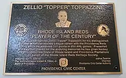 In 2000, the Rhode Island Reds Heritage Society named Toppazzini its "Player of the Century"; it presents an annual award in his honor. In 2012, Zellio was inducted into the AHL Hall of Fame.