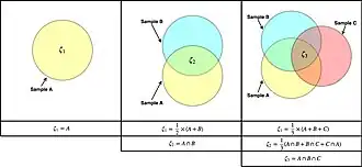 Beta diversity (β-diversity) is a measure to allow for a comparison between the diversity of local communities (α-diversity). The greater the similarity in community composition between multiple communities, the lower the value of β-diversity for that set of communities. Using the number of distinct taxonomic groups per community as a measure of α-diversity one can then describe β-diversity between two communities in terms of distinct number taxonomic groups held in common between them. Given two communities, A and B, a measure β-diversity between both communities can be described in terms of their overlap A ∩ B (ζ2) as well as the average number of unique taxonomic categories found in A and B (ζ1). In the framework of ζ-diversity we can then describe the average β-diversity, as described by the Jaccard index, for a set of samples as