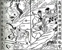 In 231,[49] when Zhuge Liang launched his fourth invasion of Wei, Cao Rui ordered Sima Yi and Zhang He to lead Wei forces west to counter the invasion. When Zhang He's army arrived in Lueyang County, Zhuge Liang retreated to Mount Qi (the mountainous regions around present-day Li County, Gansu) to defend his position. When Sima Yi ordered Zhang He to pursue the enemy, Zhang He refused and said that according to classical military doctrine, they should not pursue an enemy force returning to its base. Sima Yi insisted, so Zhang He had no choice but to pursue the retreating Shu forces. He fell into an ambush at Mumen Trail (木門道; near present-day Mumen Village, Mudan Town, Qinzhou District, Tianshui, Gansu) and died after a stray arrow hit him in the thigh.[50] Cao Rui granted him the posthumous title "Marquis Zhuang" (壯侯),[51] which literally means "robust marquis".
