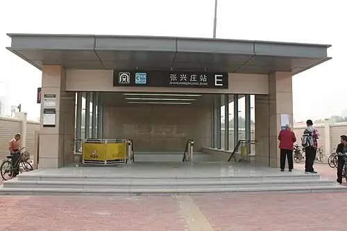 Zhangxingzhuang Station (Chinese: 张兴庄站) is a station of Line 3 of the Tianjin Metro. It started operations on 1 October 2012.[1]