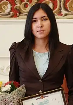 Zhanna Bupeeva (Russian: Жанна Бупеева (Саршаева); born April 29, 1993, in settlement Wolodarski in Astrakhan Oblast, Russia) is a Russian player in the Russian and Brazilian draughts. She was world champion in Russian draughts 2013 and 2017, took second place in 2007 (Brazilian draughts), 2011, 2015 and 2018, European champion in Russian draughts 2014 and 2016. Many times champion of Russia. Zhanna Bupeeva is Women's International grandmaster (GMIF) since 2008.[1]