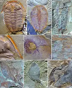 - ^ Du, Kun-sheng; Guo, Jin; Losso, Sarah R; Pates, Stephen; Li, Ming; Chen, Ai-lin (2024-10-02). Chipman, Ariel D; Perry, George H (eds.). "Multiple origins of dorsal ecdysial sutures in trilobites and their relatives". eLife. 12: RP93113. doi:10.7554/eLife.93113. ISSN 2050-084X. PMC 11446549. PMID 39356105.
