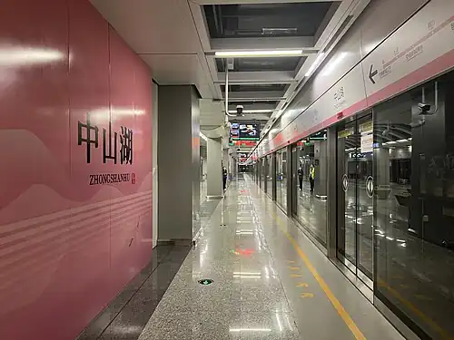 Zhongshanhu station (Chinese: 中山湖站; pinyin: Zhōngshān Hú Zhàn; lit. 'Zhongshan (Sun Yat-sen) lake station') is a station on the suburban Line S7 of the Nanjing Metro. It commenced operations along with the rest of the line on 26 May 2018.[1]