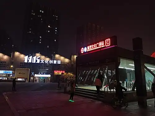 Zhongxingwenhuaguangchang (Chinese: 重型文化广场站; pinyin: Zhòngxíngwénhuàguǎngchǎng Zhàn) is a station on Line 9 of the Shenyang Metro.[1] The station opened on 25 May 2019.[2]